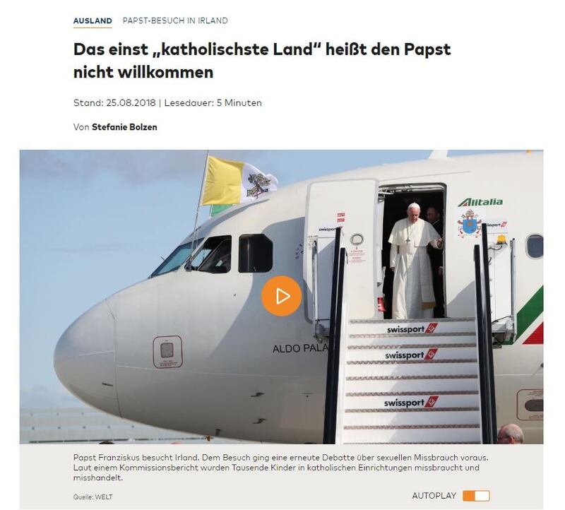 The once "most catholic country" does not welcome the Pope: The reason for this is not the secularization that has been going on everywhere in Europe for decades, which has brought the Irish at a rapid pace divorce, gay marriage and, most recently, liberalization of the strict prohibition of abortion . In 1961, 95 percent of the Irish still defined themselves as devout Catholics, in 2016 it was 78 percent. The reason is the church itself. It left deep scars in what was once the "most Catholic land on earth," as the Irish used to praise themselves.