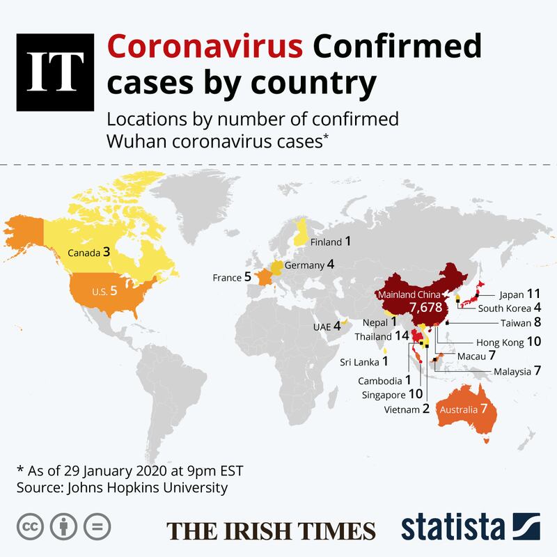 The Department of Foreign Affairs also updated its travel advice on Wednesday to Irish citizens to avoid non-essential travel to China.