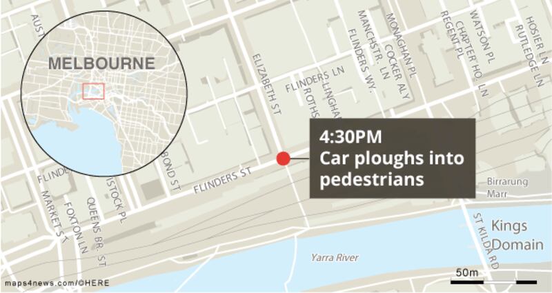 Investigators have found no evidence to suggest a link with terrorism and Mr Patton said they had not established any relationship between the two men. Some 19 people were injured, four critically, when a white car was driven “in a deliberate” act at crowds outside Flinders Street station at around 4.30pm local (5.30am Irish time) on Thursday.