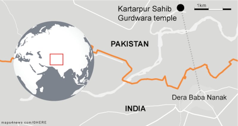 The projected 6km-long passageway will enable pilgrims to walk from Dera Baba Nanak village to the Kartarpur Sahib Gurdwara temple, east of Lahore, where Sikhism's founder Guru Nanak Dev Bedi lived the last 18 years of his life until his death in 1539.