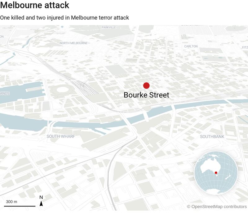 The attack during the afternoon rush hour brought the centre of Australia’s second largest city to a standstill. Hundreds of people watched from behind barricades as police tried to apprehend the attacker.