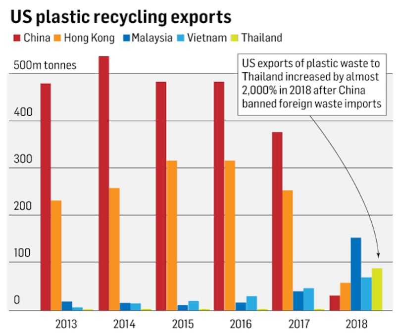 Other countries are cracking down on imports of plastic waste, including Thailand, which plans to ban foreign plastic scrap imports by 2021. China was previously the world's biggest importer of plastic waste until a ban in early 2018 sent much of the material flooding into southeast Asia instead.