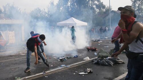 Migrant crisis: Hungarian riot police fire tear gas at Serbian border