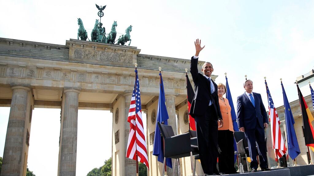 At his Brandenburg Gate address this afternoon, five years after his last visit and half a century after president Kennedy, Mr Obama is expected to play down talk of a cooling-off in transatlantic relations as Washington turns to Asia.