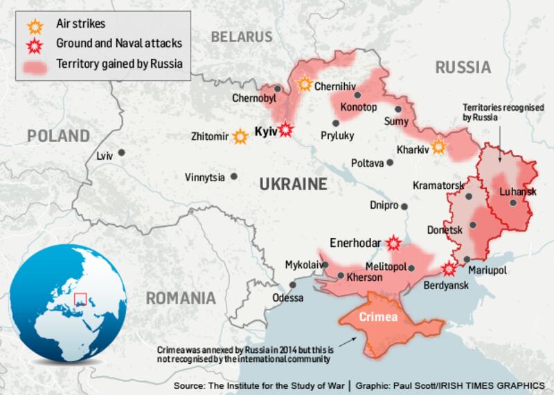 Russia’s military claimed it had captured the cities of Berdyansk and Enerhodar and the “territory around” a nuclear power plant in Zaporizhiya in the country’s southeast. It also said it had taken control of Ukraine’s airspace.