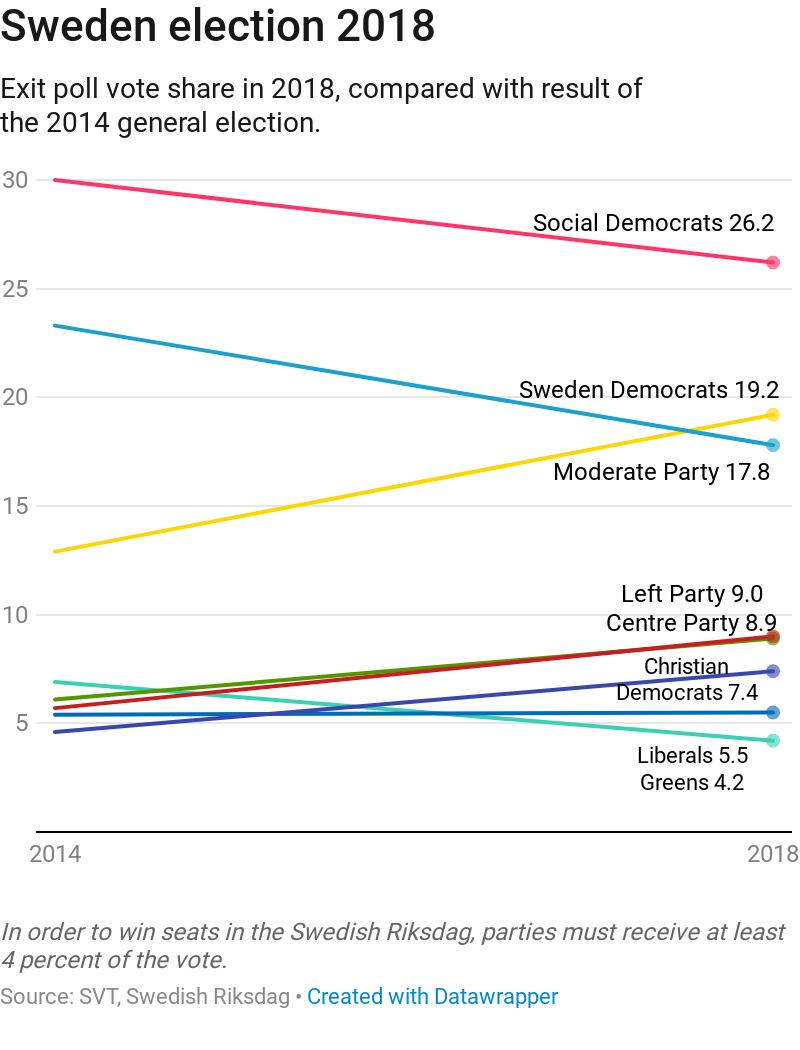 The nationalist Sweden Democrats were on track to get 17.8 per cent.