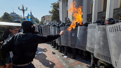 Violence breaks out in Kiev after MPs give initial backing to reforms for more autonomy in the rebel-held east.