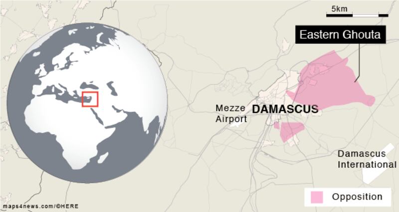 Eastern Ghouta is the last major stronghold near Damascus for rebels battling to topple Syrian president Bashar al-Assad, who has driven insurgents from numerous areas with the military backing of Russia and Iran.