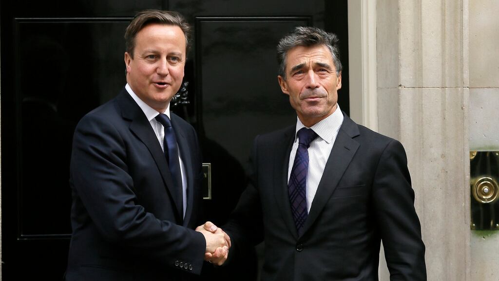 Mr Rasmussen met British prime minister David Cameron at Downing Street today to discuss Syria and Afghanistan.