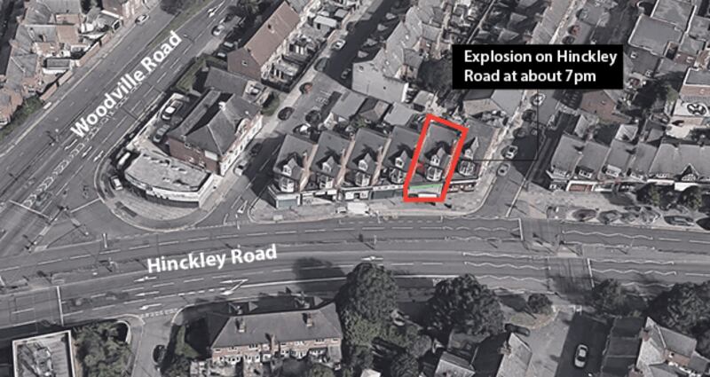 Fire crews, paramedics and police responded to reports of an explosion at the property on Hinckley Road at about 7pm.