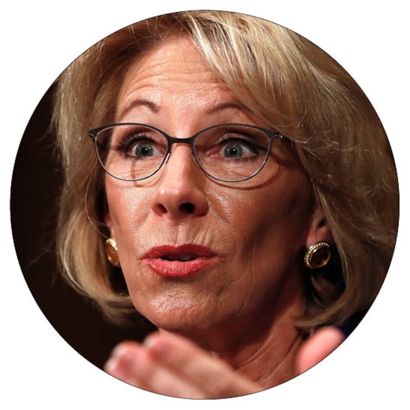 The billionaire philanthropist (59) believes in privatising public education. The former chairwoman of the Michigan Republican Party and her family, who own the Amway business, have donated more than $200 million to the party. She was criticised for her shaky grasp of education issues during her confirmation hearing and for suggesting that guns should be allowed in certain schools to deal, for example, with the threat from grizzly bears in Wyoming.