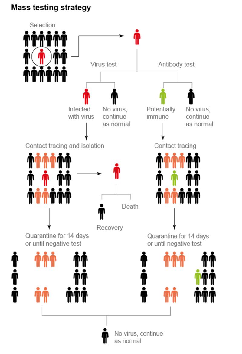 Central to a strategy of particular isolation is knowing exactly who has the virus. Mass testing is therefore the crucial ingredient. Indeed, testing has been the cornerstone of the successful South Korean exit strategy. Successful countries are conducting about 100 tests for every confirmed case.