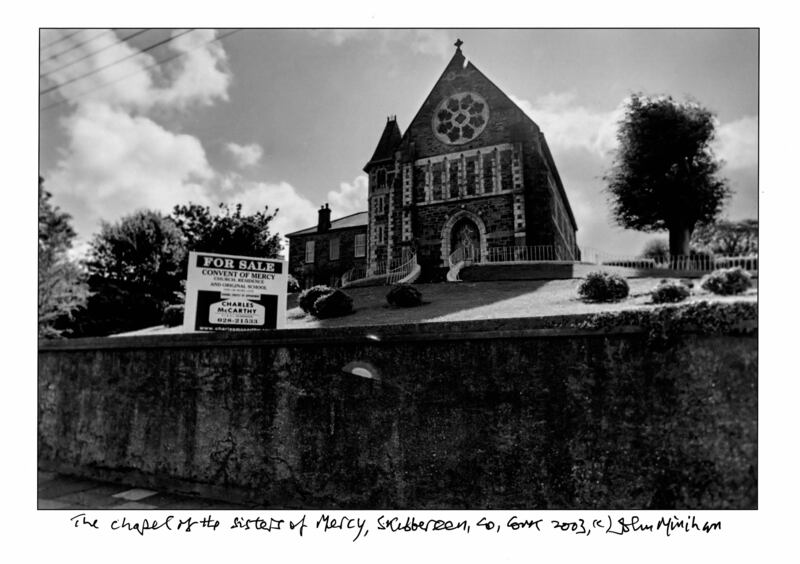 Each time I left Skibbereen for my journey to the South Infirmary, I passed what was once the Sisters of Mercy chapel. The nuns ended their 144-year connection with Skibbereen in 2004. I photographed Sister Ita and the six remaining nuns in 2003. The chapel was sold; only the four walls remain as the building was completely destroyed by fire in 2020. I always look at the roofless, lifeless building and the remaining fresco of the mother and her son. It’s not a Giotto but still commands our attention.