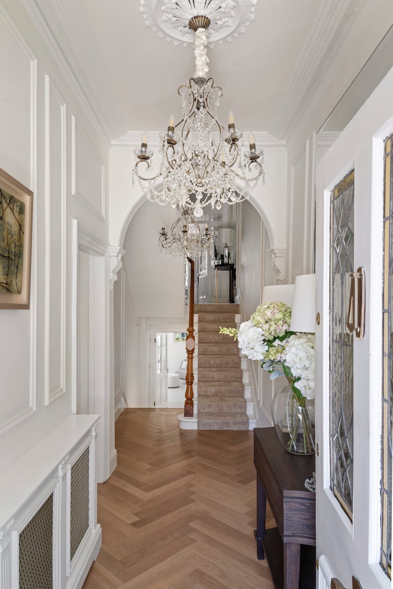 “We also introduced wall beading to the hallway stairs and landing, and again worked with the original features in the master bedroom, while also introducing a contemporary twist to the bespoke built-in joinery on either side of the headboard, to help frame up the bedroom and add some nice storage for books and other objects.”