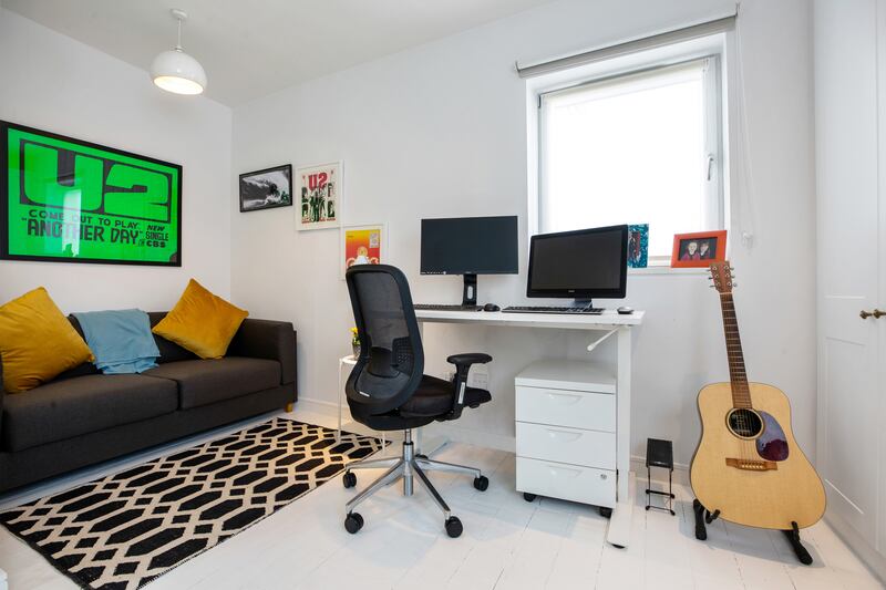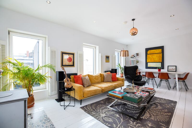 The property extends to almost 146 sq m (1,572 sq ft), and has the added attraction of a delightful inner courtyard and a large roof terrace covering 55 sq m (600 sq ft), laid out with upcycled wood flooring, and with spectacular views over Dublin Bay. It’s the perfect place for summer entertaining, although the owner says he also uses it often during the winter months.