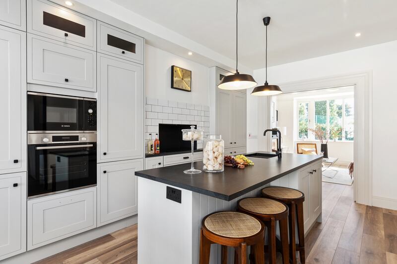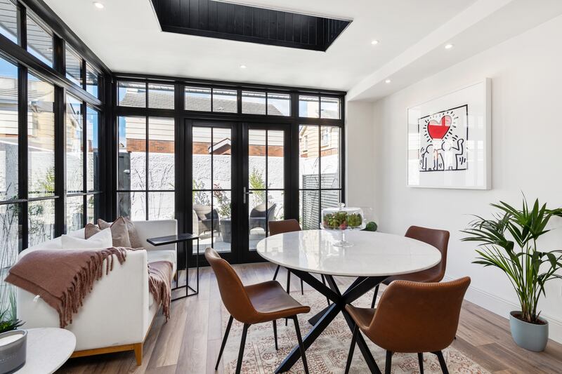 Internally, everything is pristine with some clever additions in the form of a hidden en suite for the principal bedroom, and a cool extension. While the entire house had the usual rewiring and replumbing, the fact that the Ber is now a B1 is telling that renovation works were not just a cosmetic lick of paint with a new kitchen thrown in for good measure. It shows the levels of insulation behind freshly painted walls and underneath the heated flooring, coupled with technology from a state-of-the-art heat pump.