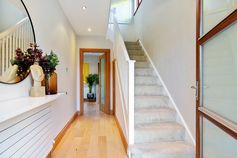 Number 46 Abbey Road is a former local authority house that has been completely refurbished and modernised, and now offers a smart home option for a young family. The owner, who works in the tech industry, stripped the house back to the walls, put in new plumbing and heating, installed Rationel double-glazed windows and doors, and “futureproofed” the house by putting in internet connections and ethernet cabling. “I never foresaw that I’d be working extensively from home,” he says.