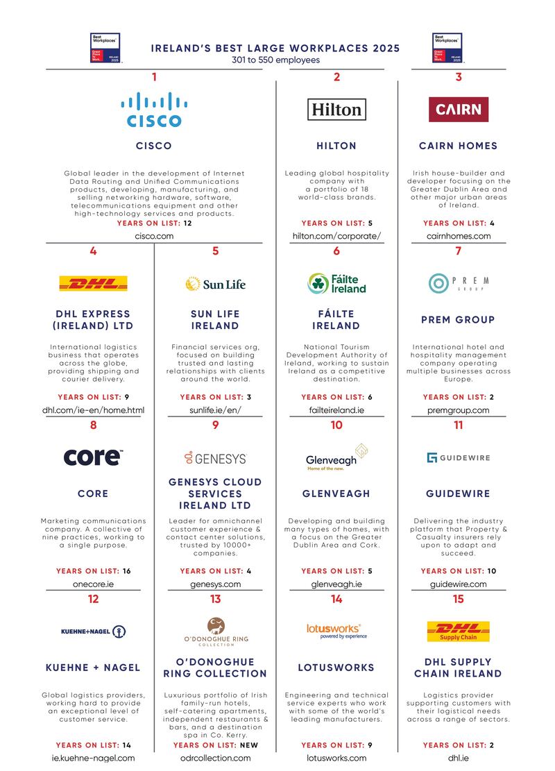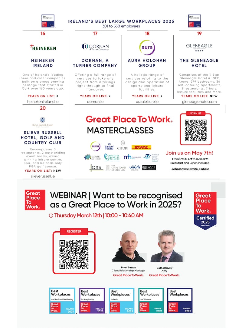 The 20 large and 15 super large businesses selected for Best Workplaces 2025