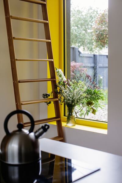 “The walls for the most part are white within the house, but we have a few areas where there are strong pops of colour – blue in our bedroom, to the yellows that we have in our stairwell and windowsills.”