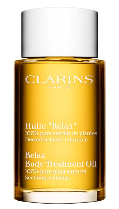 Clarins Relax Body Oil contains chamomile, which is great for relaxing tense muscle fibres. I love to rub a couple of drops into the wrists and onto the soles of the feet at bedtime to promote a more restful sleep. To calm the mind, take a few drops of the Clarins Relax Oil into your hand and then warm the oil in your hands by rubbing them together. Bring your hands up to your face and inhale deeply through your nose for a count of four, hold your breath for a count of four, and then breathe out through your mouth for a further count of four. Repeat this action eight times and it will have an instant comforting effect.