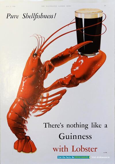 In a series of posters from the 1930s onward, he brought lobsters and Guinness together in different ways to reinforce the point that, for many palates, the best traditional pairing with Irish seafood isn’t wine – it’s Guinness.