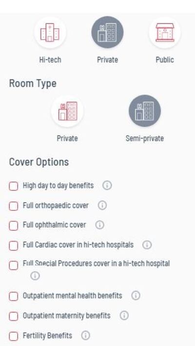 By using the ‘Cover Options’ section you can reflect your plan requirements more accurately and reduce the number of plans being shown. For example, if day-to-day cover is important to you or if cardiac or orthopaedic cover are priorities, you tick those options to filter your original results further.