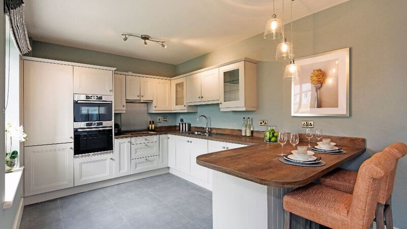 The three bedroom semi-detached houses (115 sq.m. / 1,238 sq.ft.) are priced from €325,000; the four bedroom semi-detached houses (136 – 147 sq.m. / 1,464 – 1,582 sq.ft.) are priced from €375,000; the five bedroom detached houses (157 – 221 sq.m. / 1,690 – 2,379 sq.ft.) are priced from €500,000.