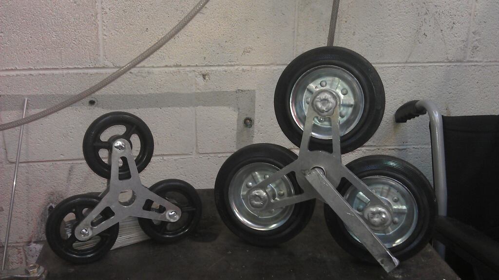 “One of the students had seen three-wheeled hand trolleys used for bringing loads up stairs, and we thought why not alter that concept so it could be applied to a wheelchair,” says Roberts.