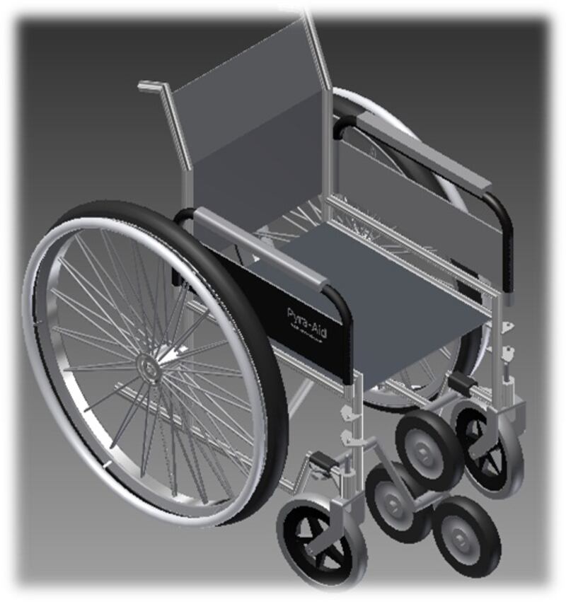 A group of students at Cork Institute of Technology has come up with a potentially simple solution that could help. The Pyra-Aid (TM) is a prototype three-wheeled device that attaches to a wheelchair, is powered by momentum and gives an extra bit of lift to help raise the front wheels up a step.