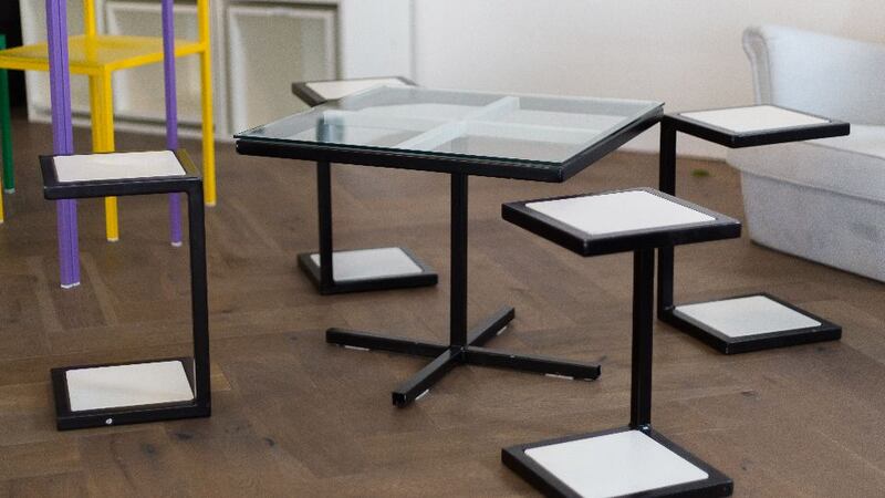 The most recent addition to her range is a striking table and stool set that is designed with apartments in mind. She wanted to create a piece that would be as functional and as surprising as her bookcase but stand out in its own right. She created a black and white table that has four stools built in that can be used in lots of different way. “I deliberately stripped it of colour so that it would be distinct in my range but also to give it its own identity. But I do love colour. It makes me happy and can be calming or exciting at the same time. We should use it more in our homes.”