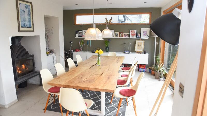 One of the walls of his north county Dublin home are hung with animal skulls and bones alongside pieces of drift wood and photographs – souvenirs from his many sea kayaking trips to the islands around Ireland. His personality and that of his family dominate the large airy spaces that make up this modern home and the large extension that now defines the house is stuffed with colour and texture, bringing the story of this artistic family to life.
