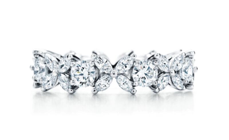 The inspiration for the Tiffany Victoria collection, which is distinguished by a flower made from four hand-cut diamond petals, was from the fire of the diamonds they source.
