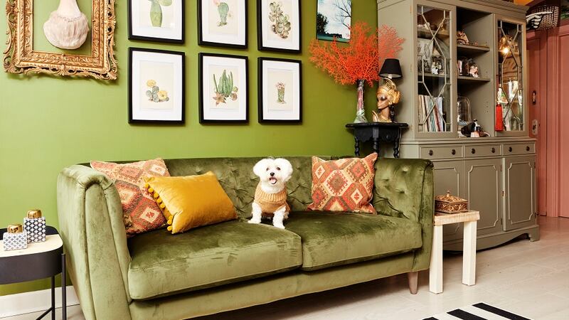 Emma works as a designer and colour consultant for Stillorgan Décor and lives with her dog Maxi, “the love of her life”, in a beautifully renovated home in Ashford, Co Wicklow.