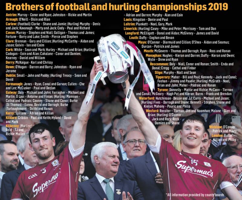 In total this year there’s been 79 sets of brothers – between the football and hurling senior championships – on intercounty squads.
