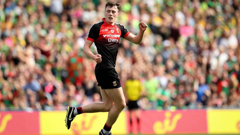 Mayo's most underrated player and one of their best this season. A modern wing-forward: wins his own ball on the floor or in the air, strong runner off the shoulder, scores regularly and showed excellent dead-ball accuracy in Kerry replay.
