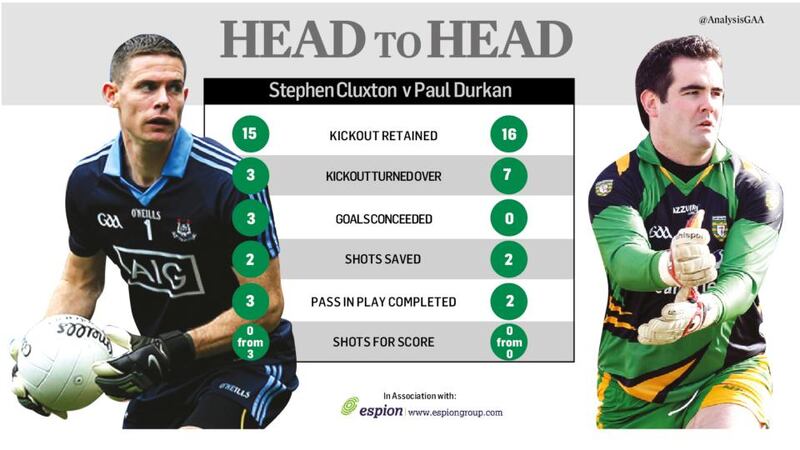 But the champions were in excellent form for most of the first half. Stephen Cluxton’s kick-outs were spot on _ a couple of exquisite flights into Alan Brogan’s path included the platform for the latter’s 23rd minute point.