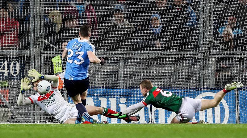 Who could have scripted it? Two own goals - the first from Kevin McLoughlin, the second from Colm Boyle - gave Dublin's malfunctioning attack a lifeline. Dublin led by a point deep into seven minutes of injury time and sought to play keep ball until Cillian O'Connor pointed at the right end for Mayo to force a replay.