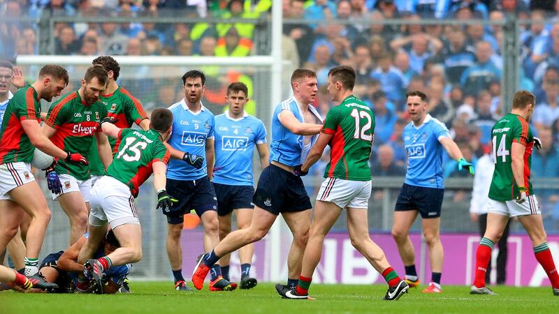 An enthralling, and fractious drawn semi-final saw Dublin lose Diarmuid Connolly to a red card following an off-the-ball scuffle with Lee Keegan. Mayo produced a superb last 10 minutes of play against the 14 men to peg back Dublin and force a replay.