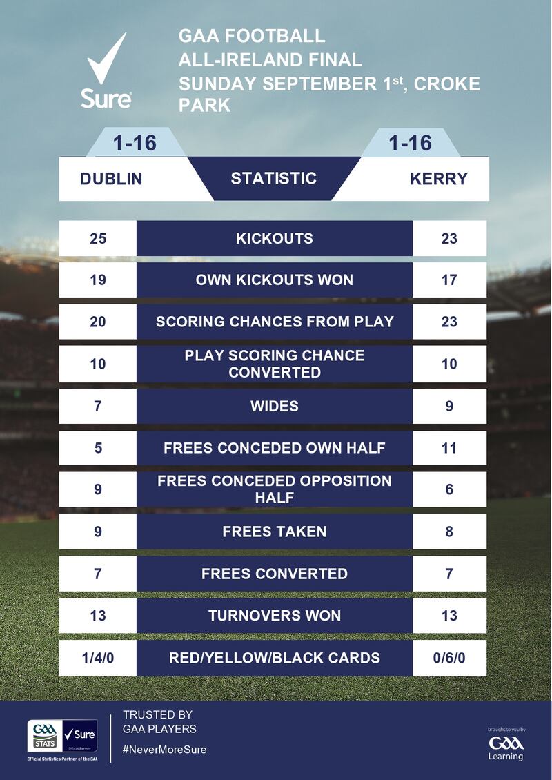 Walsh had a chance soon after but dragged it wide, only to split the posts within a minute. He promptly went out to midfield to win a kick-out to set O’Shea away and all of a sudden, with 61 minutes on the clock, we had a level game.