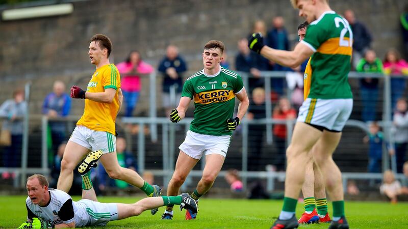 Meath had survived an early onslaught and had even snuck a nose in front early in the second half against Kerry. O'Shea's goal was a puncture they couldn't repair, though. Gavin McCoy bit on a crossfield ball from Paul Murphy and by the time he realised he'd overshot the runway, O'Shea was away and gone. He ate up the ground to the Meath goal before crashing to the net from spitting distance. Meath never recovered, Kerry topped the Super 8s group.