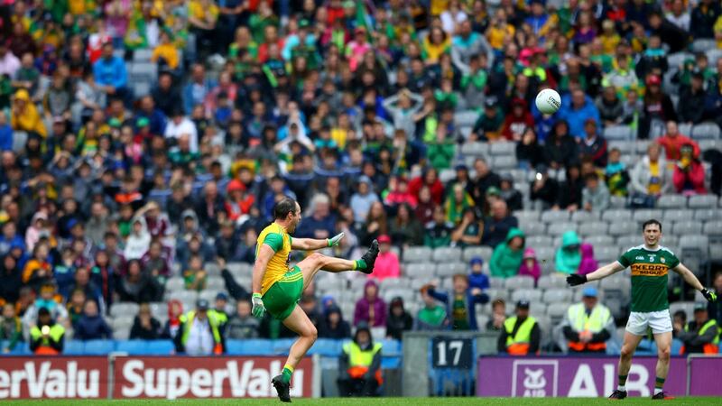 When the clock turned 60, the scores stood at 1-14 to 1-14. When the final whistle blew, it was 1-20 apiece. Okay, so it wasn’t strictly the last 10 minutes - more like 15ish - but even so, for two teams to go at roughly a point a minute with the game on the line was phenomenal. On a wet day with a greasy ball, Kerry took six shots and scored all six. Donegal took eight and scored six as well, throwing in a couple of wides that were the only bit of let-up. The giddiest, most enjoyable quarter-hour of football all year.