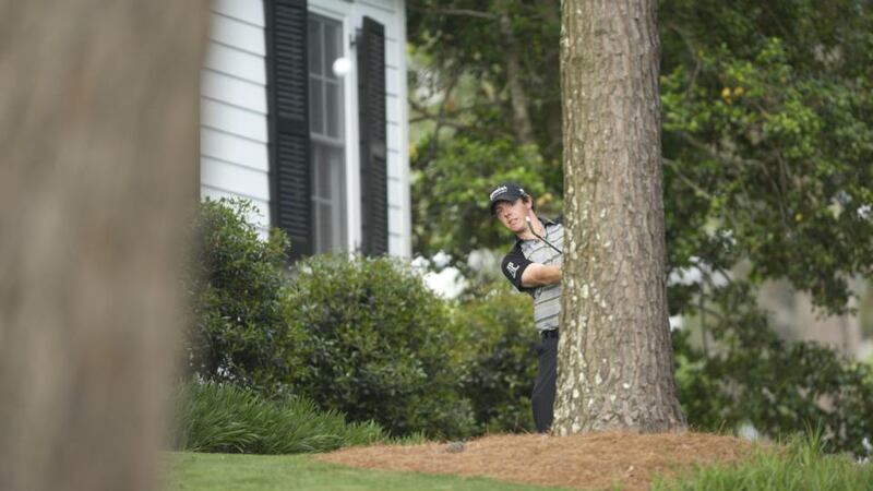McIlroy was left with no option but to chip back onto the fairway but his woes weren’t over, and his third shot missed the green left and, then, his fourth shot clipped a tree branch as he attempted another recovery.