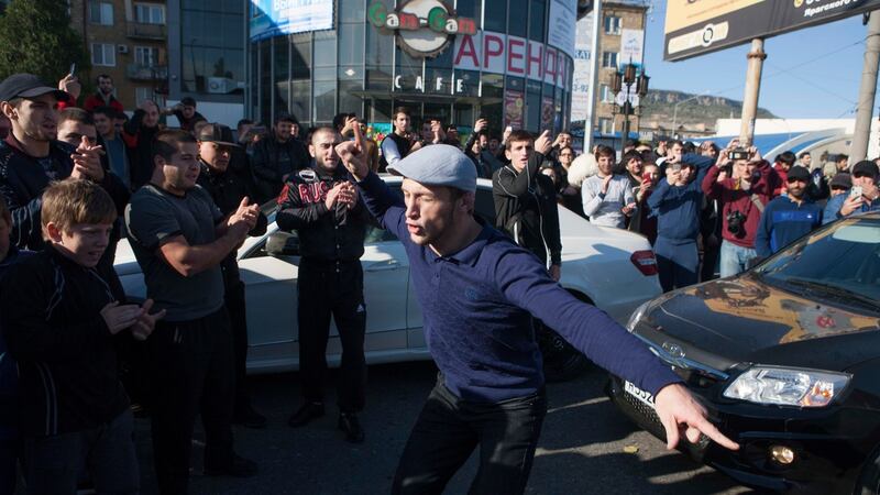 Around midnight local time, eight hours before the fight, the theatre was full. Hundreds more fans blocked traffic outside and danced to music while the police tried to keep order. Some rode horses and one even clutched an eagle — a symbol of Dagestan, and Nurmagomedov’s nickname. The air filled with the smell of burned rubber from the tires of cars squealing on the streets nearby. “Everyone will forgive them today,” one officer said. “Especially if Khabib wins.”