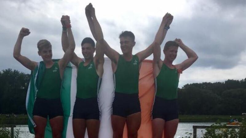 The Ireland quadruple of Barry O'Flynn, Matt Dundon, Jack Keating and James Quinlan won their heat and then reproduced the performance in the A Final – in almost exactly the same time – to take gold.