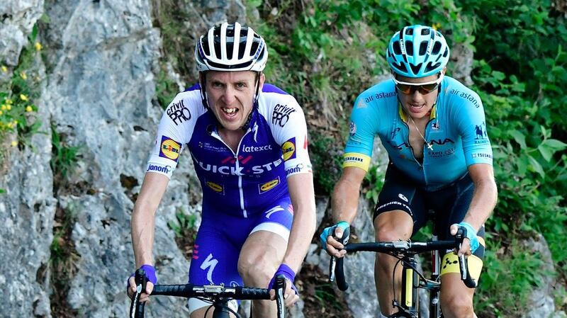Then Dan Martin made his move. The QuickStep Floors team leader attacked with seven kilometres to go on the final climb and was joined by Astana's Jakob Fuglsang. The Dane was in his career-best form and subsequently pushed ahead of Martin, but the Irishman dug in, continuing to drive all the way to the line. He finished just 12 seconds back in second.