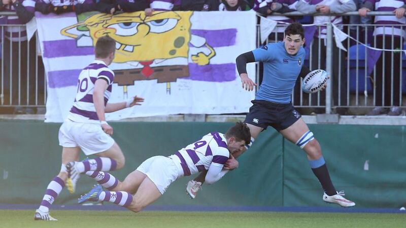 Clongowes, stretched across the pitch at the fag end as St Michael’s poured their big men in to force a try, held firm by inches, referee Barry O’Keefe finally blowing for a Clongowes ball after countless recycles, crash balls and cramps. The final kick into a baying crowd ended what was a match of passion and swinging fortune.