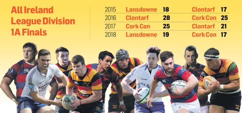 A whistle-stop statistical tour of the finals under scrutiny reveals that three teams have contested the four finals, Lansdowne lead the way with two wins and that on three occasions the club that topped the table in the regular season went on to win the final. The exception was when Con in 2017, finished fourth but beat Lansdowne and then Clontarf in a final, both at the Aviva stadium.