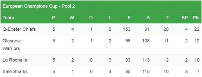 Exeter have won the pool, but like the other pool leaders have yet to secure a prized home quarter-final. The Chiefs have never quite cracked Europe but their intent is clear this season and they can ensure a first ever home quarter-final by beating La Rochelle at Sandy Park on Saturday evening, having won each of their three contests against the Top 14 club. Exeter’s only previous quarter-final appearance was in 2016 when they were edged out by Wasps in a dramatic match.