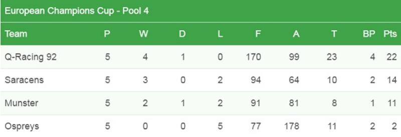 However Saracens’ defence of the title is on the line. The back-to-back champions, now likely to be relegated from the English Premiership, know that a bonus point would effectively mean a place in the last eight.