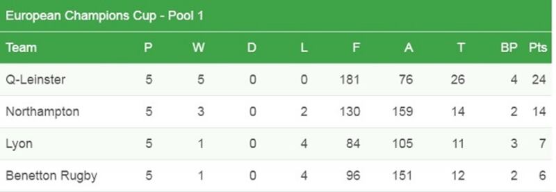 However, were they to beat Benetton in Treviso on Saturday, last season’s runners-up will secure the number one seeding in the knockout stages and thus not only a quarter-final at the Aviva stadium against the number eight seeds (possibly Northampton or Glasgow) but, were they to win that game, a home semi-final as well.